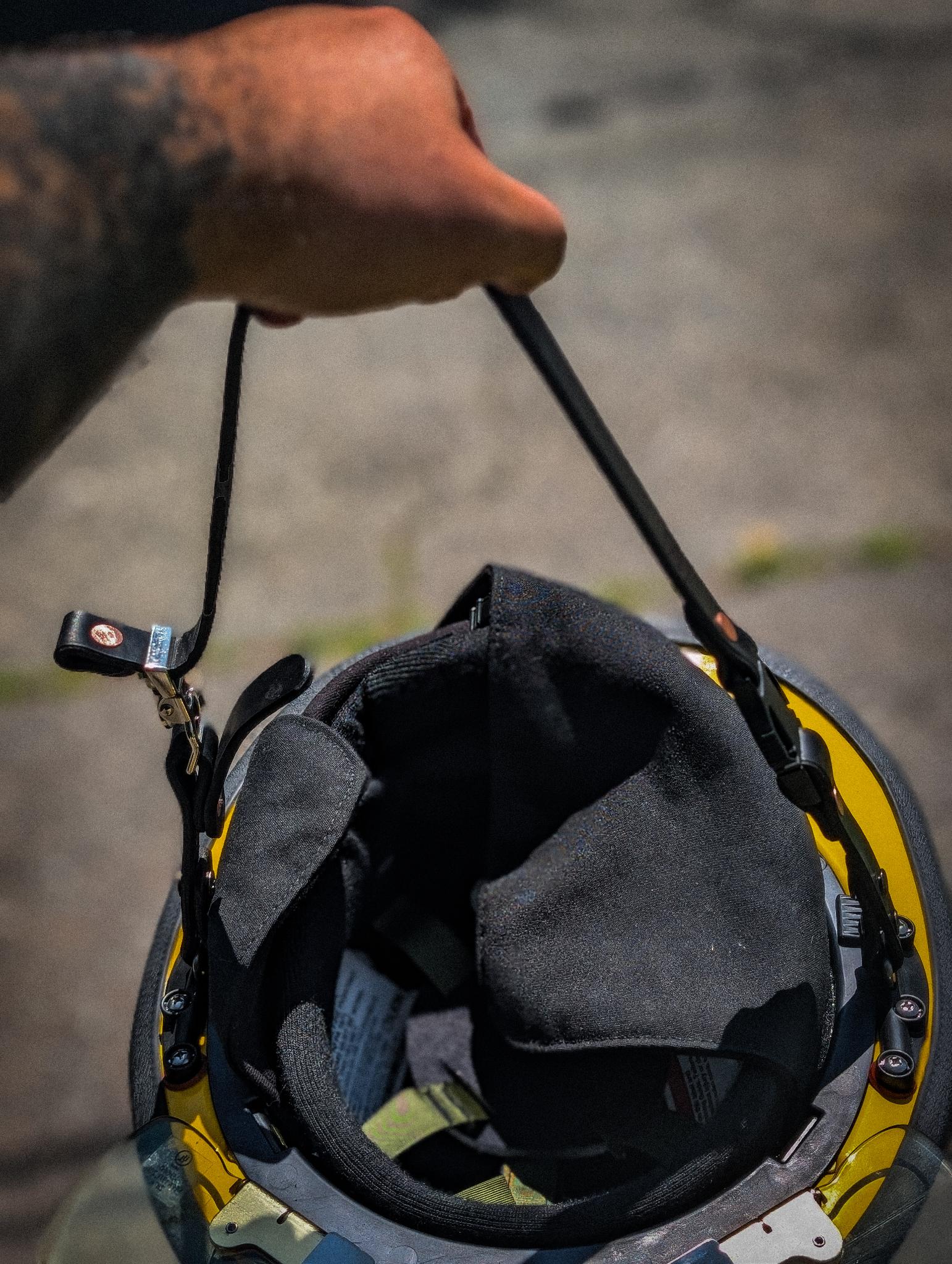 Firefighter Leather Helmet Strap – Black Bridle Leather